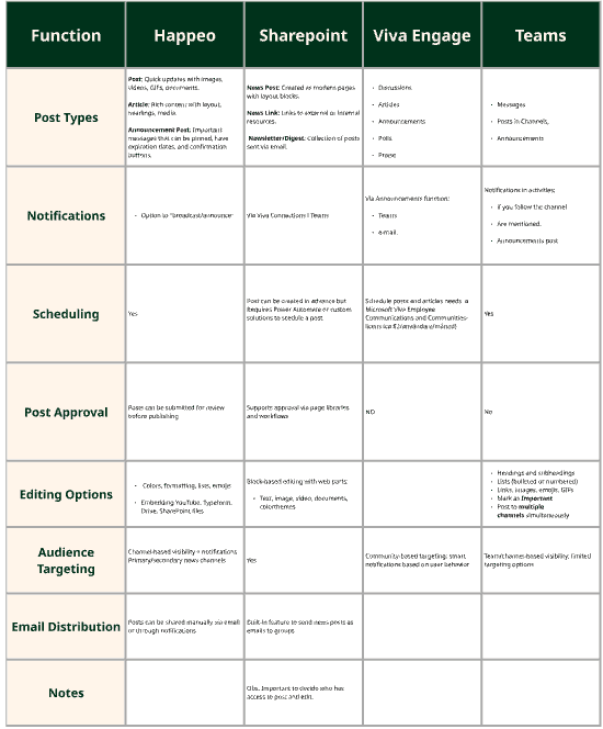 •Document gaps between Happeo and SharePoint/Viva.